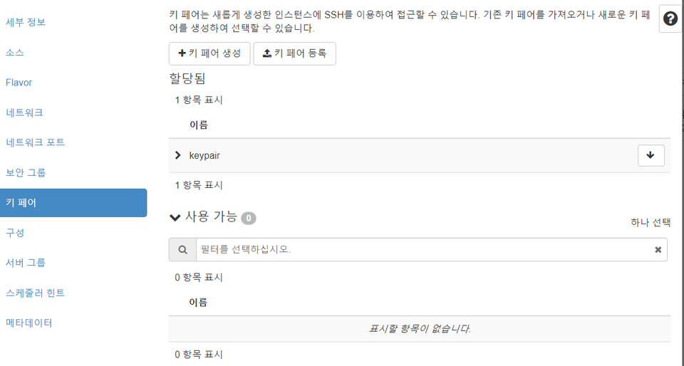 #instance추가 전에 외부 접속를 위한 #키페어를 추가 합니다.