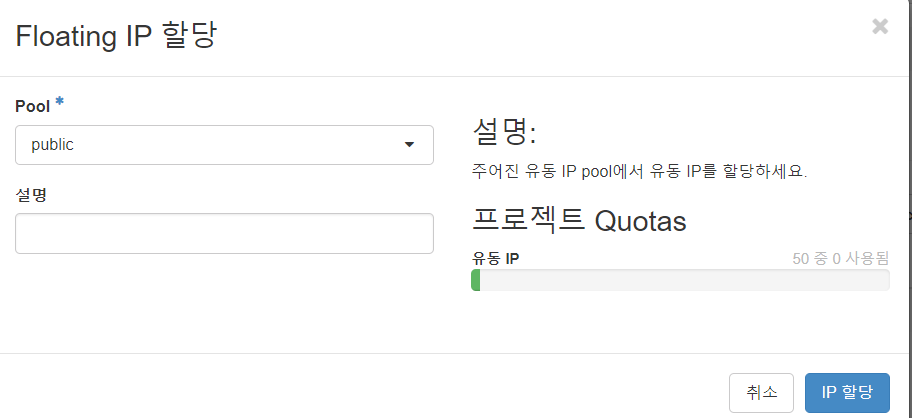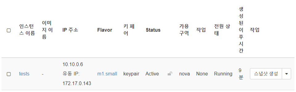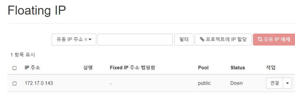 Console 만 확인했고 실제 외부에서 접속 할 수 있도록 Floating IP를 맵핑 시켜주는 작업을 진행 합니다.