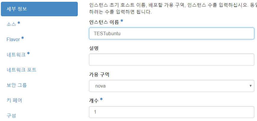 #이름 / #이미지선택 / #네트워크 선택 / #키페어 선택 후 생성 합니다.