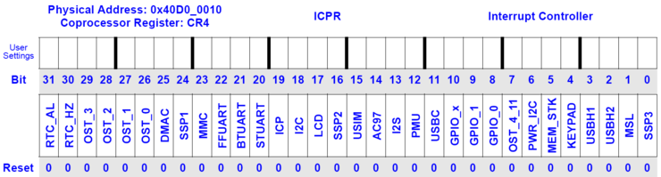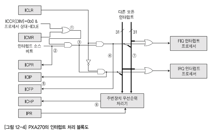 인터럽트가 발생하면 ICPR의 한 비트가 설정됨. 설정되는 비트는 인터럽트를 야기한 입출력 디바이스에 해당.