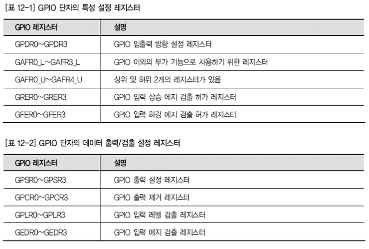 GPIO 레지스터의 기능(계속)