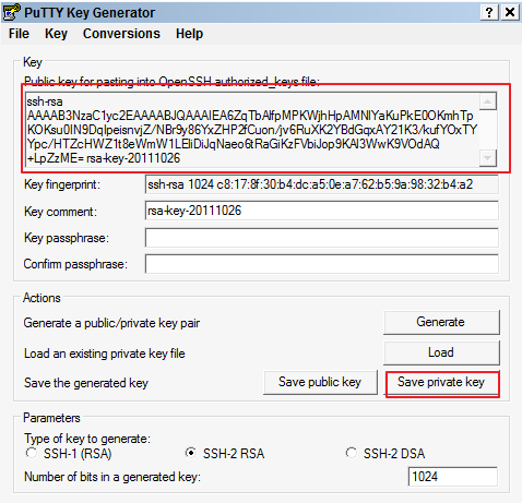 (2) ‘Save private key’ 버튼을 눌러서 파일로 저장했다가 나중에 WinSCP에서 사용합니다.