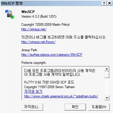 최신버전의 파일을 다운로드 받으시면 WinSCP의 한글 버전을 사용할 수 있습니다.