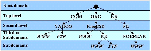 도메인은 관리의 분산을 위해 계층적으로 구성된다. 로컬 네트워크에 새로운 시스템이 증설되거나 이름이 바뀔 때 중앙기관에 통보할 필요 없이 간단히 DNS 데이터베이스에서 해당 부분만 변경하면 된다.