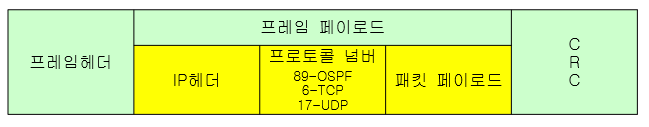 => OSPF는 IP패킷 안에 프로토콜 넘버 89(십진수)로 들어가게된다.
