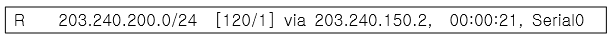 R은 RIP로 찾아낸 길을 의미하고 203.240.200.0은 목적지 네트워크(찾아낸 목적지)