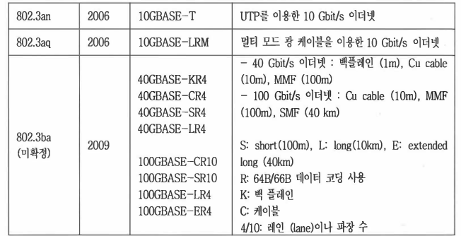또, 100Gbps이더넷에 대한 IEEE표준 위원회가 2008년에 구성되었으며, 2010년에 상용 제품이 출시될 것으로 예상된다. 근래에는 전송거리가 100Km이상인 제품들이 개발되어 LAN뿐만 아니라 도시내의 통신에서도 이더넷이 많이 사용된다. 이더넷은 물리계층과 MAC서브계층으로 나누어 진다.