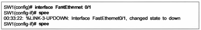 스위치에서 설정작업을 하다보면 명령어 입력도중에 시스템 관련 메시지들이 화면에 표시되면서 입력중인 명령어와 혼합되어 표시된다. 예를 들어, 인터페이스 FastEthernet 1/0/1의 속도를 10Mbps로 변경하기 위하여 speed 10이라는 명령어를 입력하는 도중에 특정 인터페이스의 상태가 변했다고 하자.