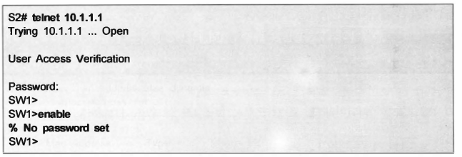 또 텔넷 접속시, 관리자용 패스워드가 설정되어 있지 않으면 특별한 설정을 하지 않는 한 텔넷으로 접속한 스위치의 관리자 모드로 들어갈 수없다.