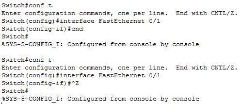 특정 모드에서 바로 관리자 모드로 이동하려면 end 명령어나 ctrl + z 키를 누른다.