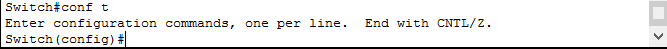 설정 모드(configuration mode)는 관리자 모드에서 configuration terminal (보통 줄여서 con t를 많이 사용한다.) 명령어를 사용하면 들어갈 수 있다. 이 모드에서는 관리자용 패스워드 설정, 스위치 이름 부여 등 스위치 전체와 관련된 설정 작업을 많이 하여, 다른 설정 모드와 구분하여 전체 설정 모드 (global configuration mode)라고 한다.