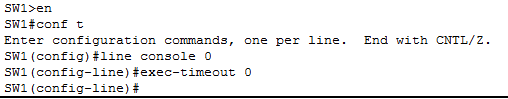 특히, 여러대의 장비를 가지고 연습할 때 한 장비에 머무르는 시간이 길어지면 나머지 장비들은 모두 이처럼 콘솔에서 빠져나온다. 다시 엔터 키를 치고 이용자 모드로 접속하면 되지만 귀찮다. 이때 오랫동안 작업을 하지 않아도 콘솔 접속이 유지되게 하려면 다음과 같이 설정한다.
