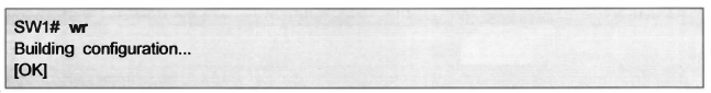 설정내용을 저장하려면 copy running-config startup-config 명령어나 write 명령어를 사용한다. 그러나, 보통 write memory의 축약형인 wr 명령어를 많이 사용한다.