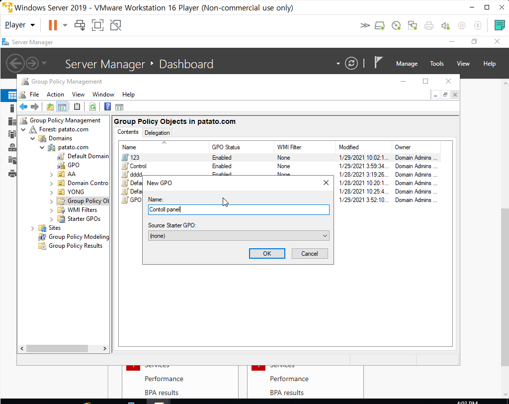 4. GPO 이름을 설정해주자 . 나는 Control panel 이라고 지었다