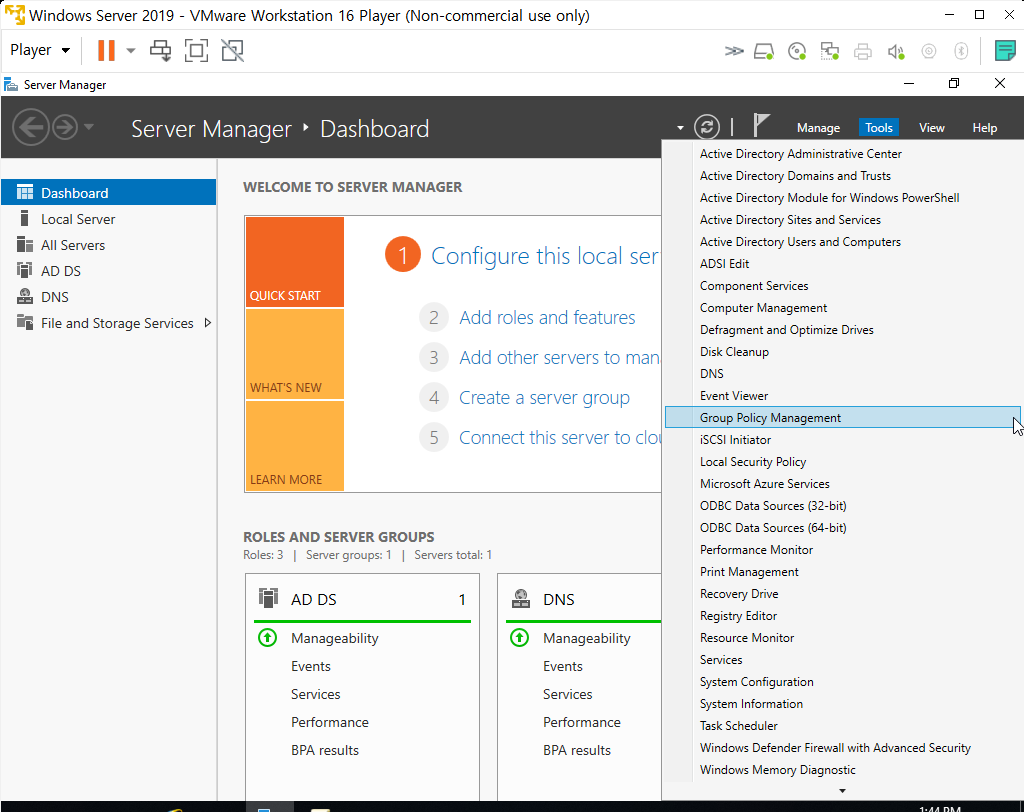 2. Tools > Group policy management 클릭