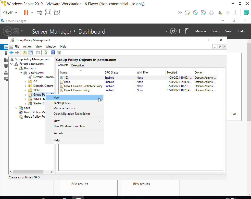 3. Group Policy Objects > 마우스 오른쪽 클릭 > NEW