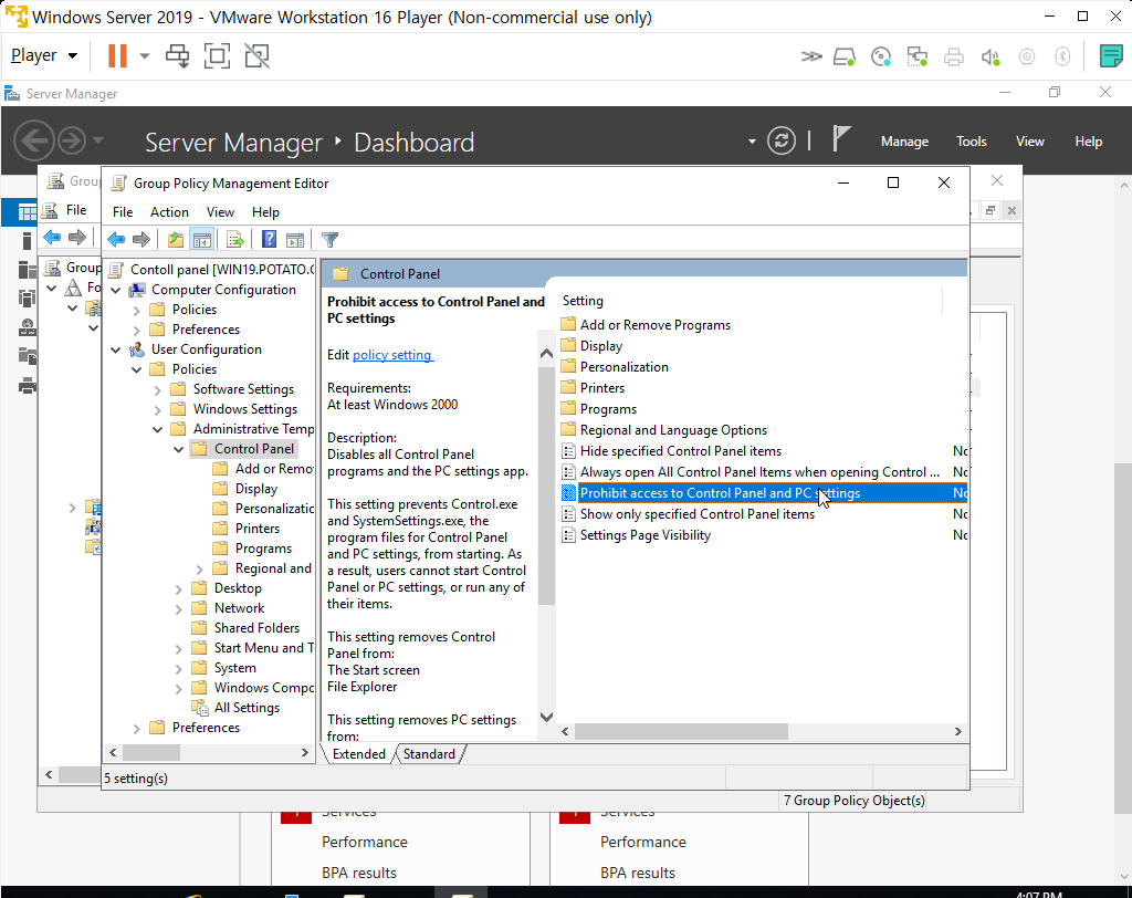 GPO 정책 설정 해보기 (사용자 제어판 접근 금지 정책)