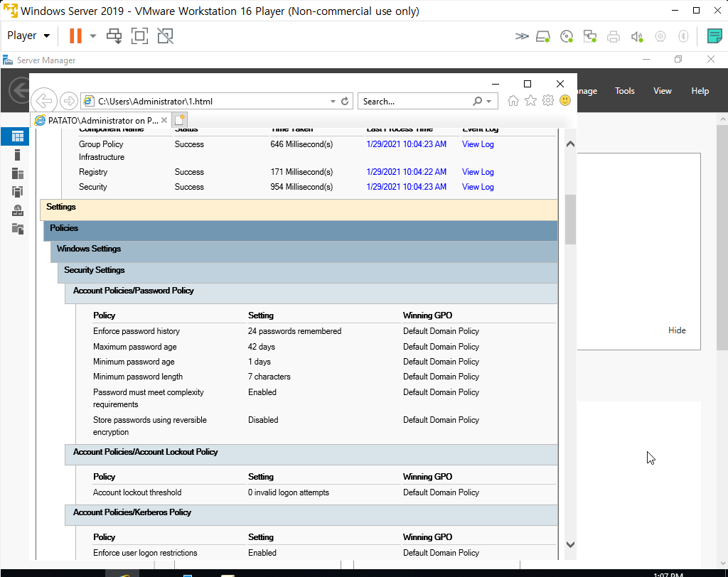 - gpresult /h <파일명>.html명령어를 통해 정책 적용을 Html 형식으로도 확인할 수 있다.