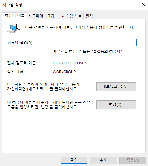 컴퓨터 이름을(아무렇게나 적당히) 설정해주고