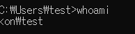 cmd창에서 kon\test 계정으로 로그인 된 것을 알 수 있다.