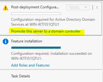 도메인 컨트롤러로 승격할거냐는 메세지가 있는데 눌러준다.