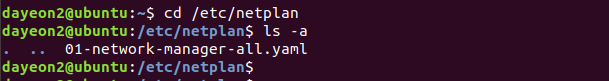 그 후, netplan 디렉터리로 들어간다.