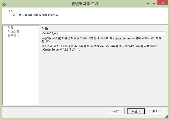 가상시스템 파일 (.vmx) 선택하고 인벤토리에 추가 한다.