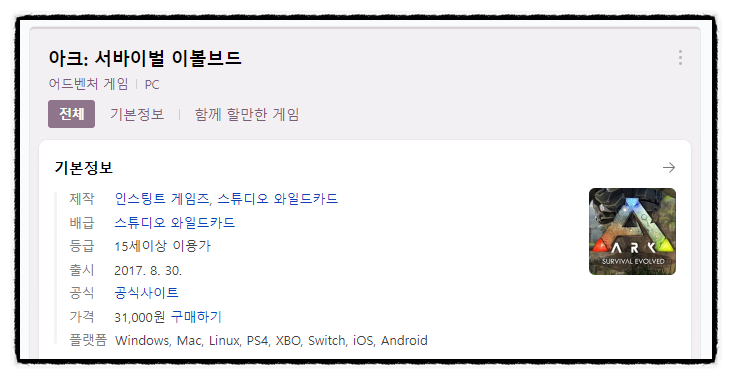인스팅트 게임즈와 스튜디오 와일드카드가 제작하고 스튜디오 와일드카드에서 배급하는 어드벤처 게임 '아크 : 서바이벌 이볼브드'가 스팀 게임 순위 40위에 진입하였습니다.