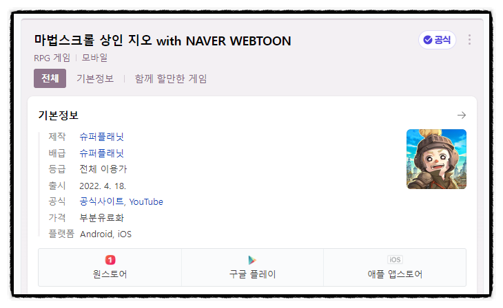 ◆ 2022년 5월 1주 차 모바일 게임 순위