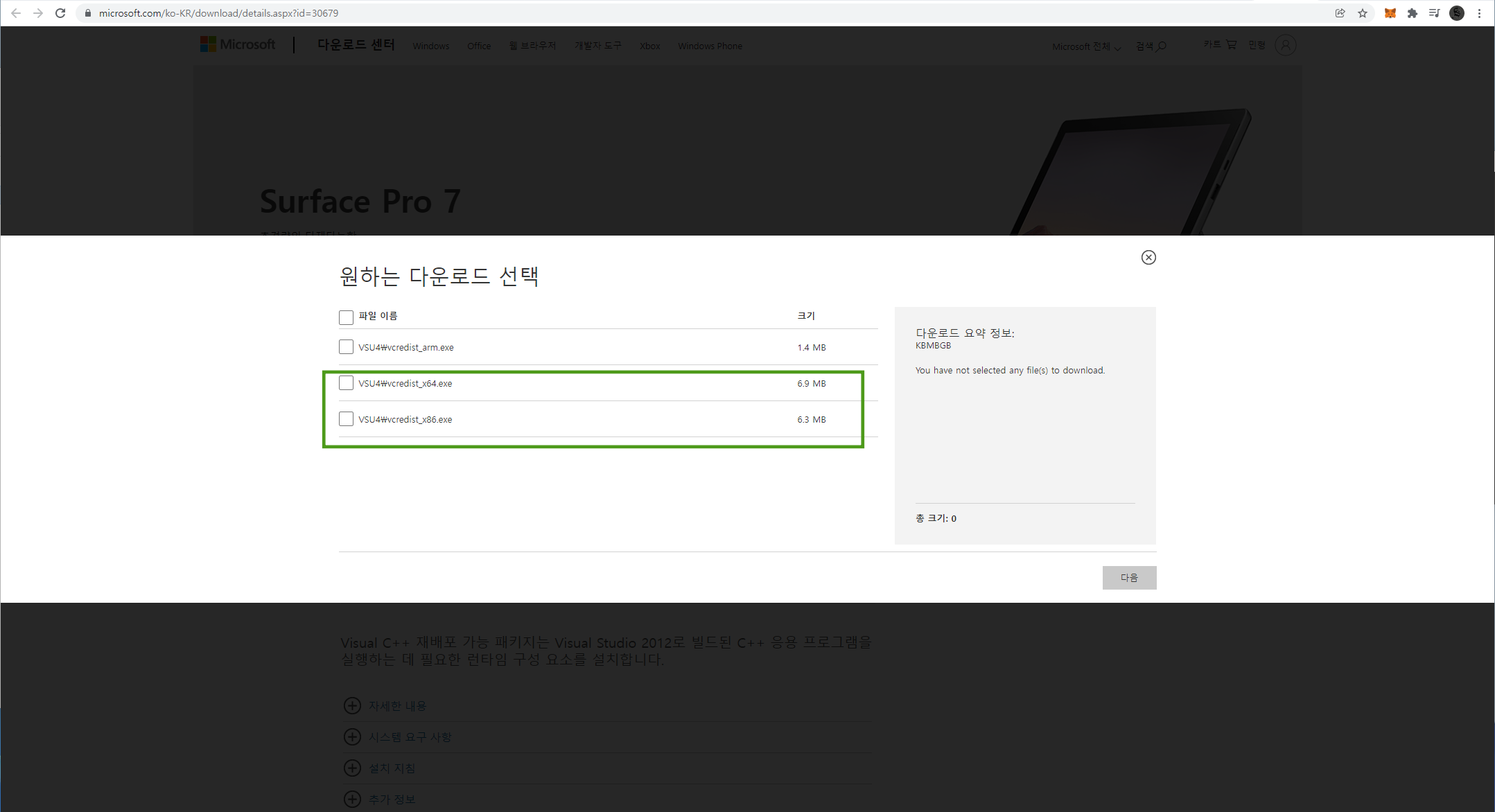여기에서 만약 자기 컴퓨터가 64비트이시라면 x64을 체크해주시고, 32비트이시라면 x86으로 체크하신 뒤에 다운로드 받아주시고 나서 설치 뒤 데스크탑 및 노트북을 재부팅 해주시면 되겠습니다.