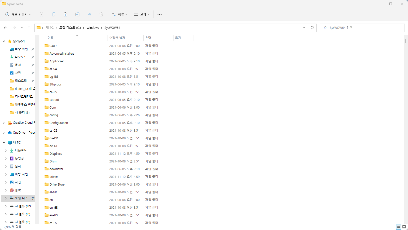 64비트 : 내PC → 로컬 디스크(C:) → Winodws → SysWOW64