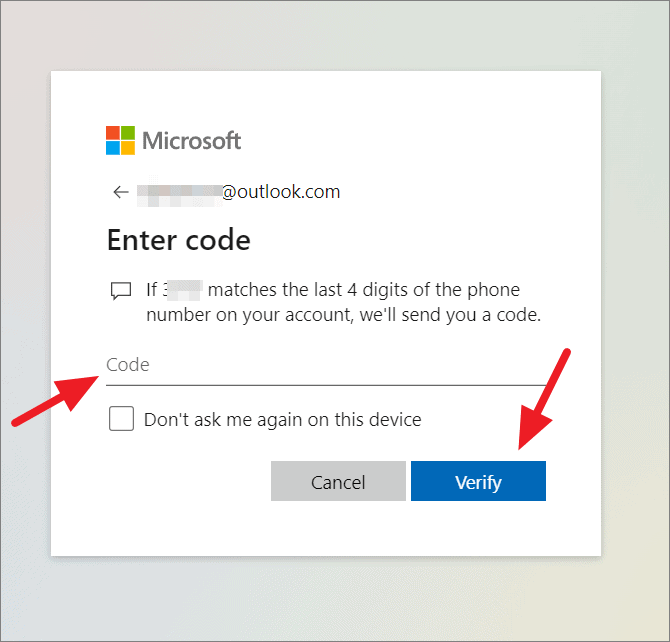 Microsoft는 휴대폰으로 전송된 OTP 코드 또는 보안 코드로 신원 확인을 요청할 수 있습니다. 전화 번호의 마지막 두 자리와 함께 ‘텍스트’ 옵션이 표시됩니다. 확인하려면 클릭하세요.