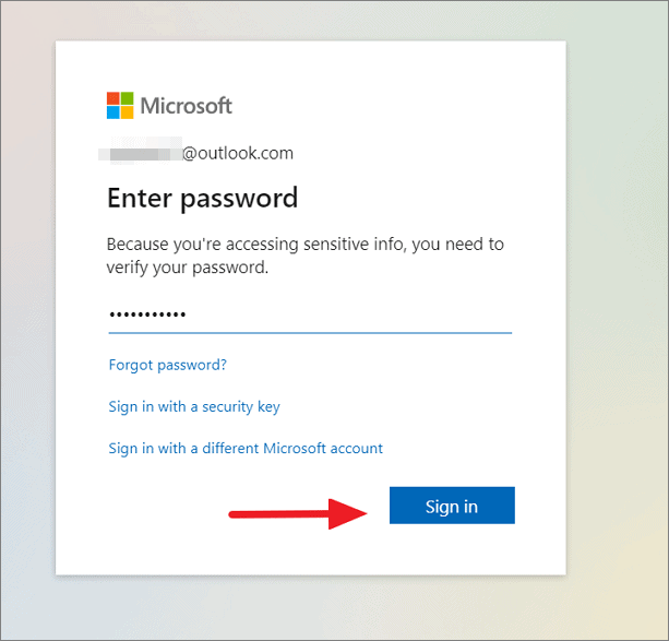 Microsoft 계정에 저장된 복구 키를 얻으려면 먼저 마이크로소프트 웹사이트 Microsoft 계정으로 로그인합니다. 사용자 이름과 비밀번호를 입력하고 ‘로그인’을 클릭합니다.