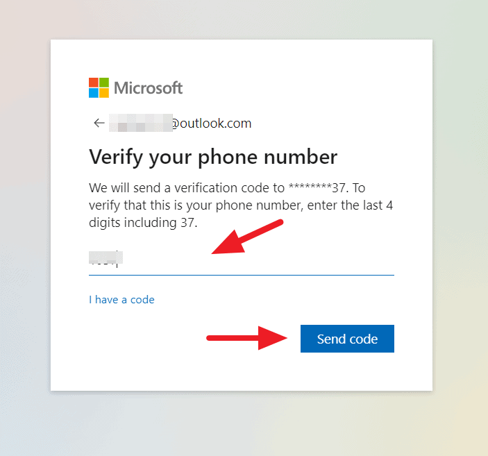 그런 다음 전화 번호의 마지막 4 자리를 입력하고 ‘코드 보내기’를 클릭하십시오.