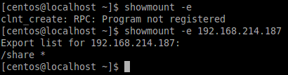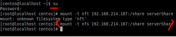 mount -t nfs 192.168.214.187:/share serverShare