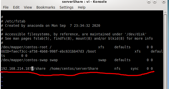 192.168.214.187:/share /home/centos/serverShare nfs sync 0 0