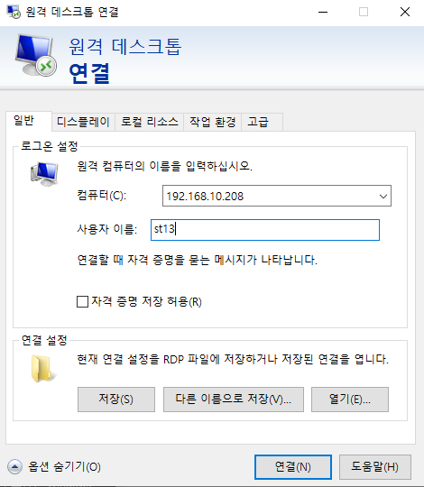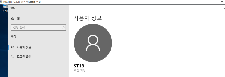 정상적으로 원격 데스크톱 연결이 되어 st13 계정으로 접속이 된 것을 확인할 수 있습니다.