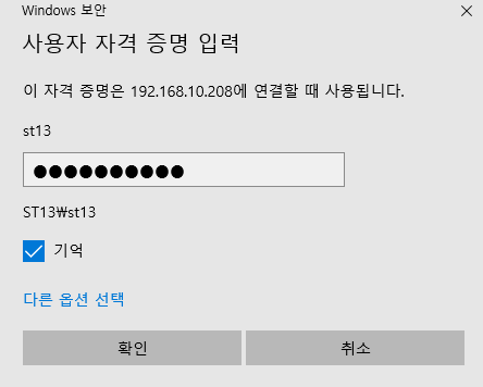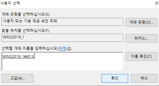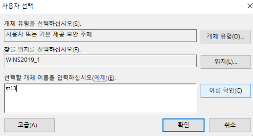 사용자 계정 이름(st13)을 입력 후 이름 확인을 합니다.