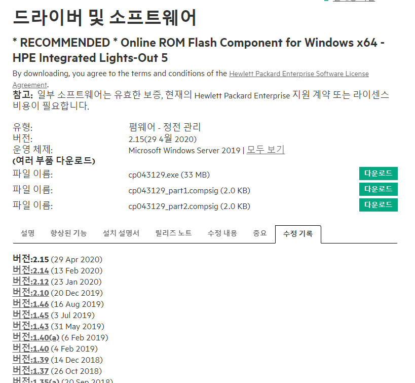* RECOMMENDED * Online ROM Flash Component for Windows x64 - HPE Integrated Lights-Out 5 By downloading, you agree to the terms and conditions of the Hewlett Packard Enterprise Software License Agreement. 참고: 일부 소프트웨어는 유효한 보��