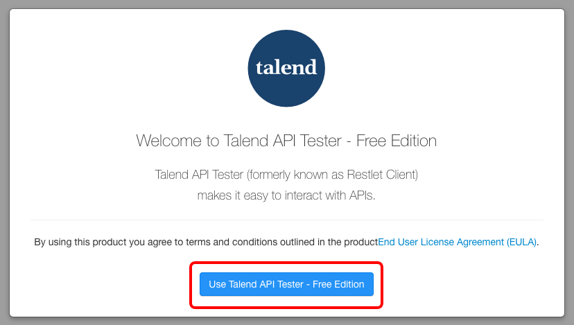 아래에 있는 "Use Talend API Tester - Free Edition" 버튼을 클릭해 줍니다.