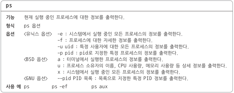 •GNU 옵션 : 붙임표 두 개로 시작한다(예 : --pid).