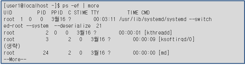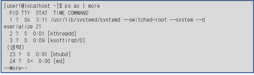 ·TTY의 값이 ?인 것은 대부분 데몬으로 시스템이 실행한 프로세스