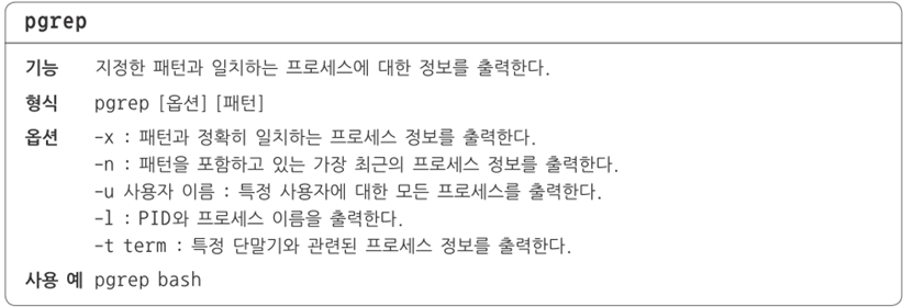 ·pgrep의 경우 -l 옵션을 지정해도 단지 PID와 명령 이름만 출력