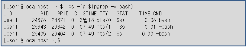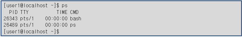 ·ps 명령을 옵션 없이 사용하면 현재 셸이나 터미널에서 실행한 사용자 프로세스에 대한 정보를 출력
