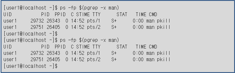 ·kill 예: man을 실행시킨 프로세스를 찾아서 종료시키기