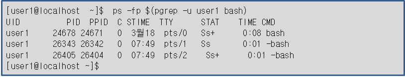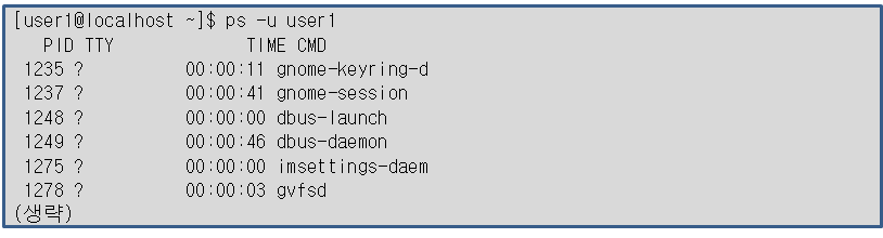 특정 사용자의 프로세스 목록 출력하기 : -u 옵션