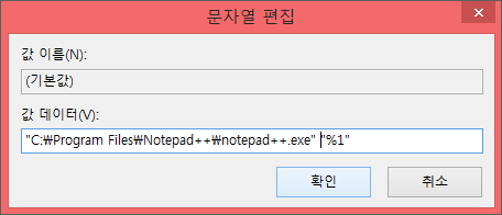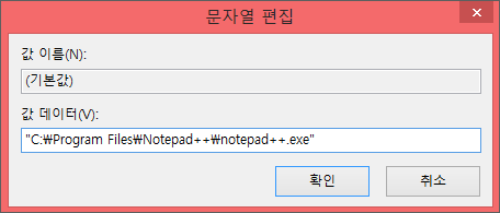 - [문자열 편집]창이 나타나면 값으로 실행할 Application을 지정하자. 여기선 경로 주위에 쌍따옴표를 붙여야 한다.