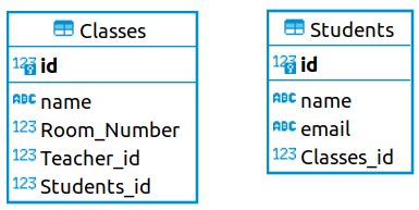 우선 Teachers 테이블에 Classes 테이블을 담아줬다. 다음과 같은 방법은 좋지 못한 사례이다.