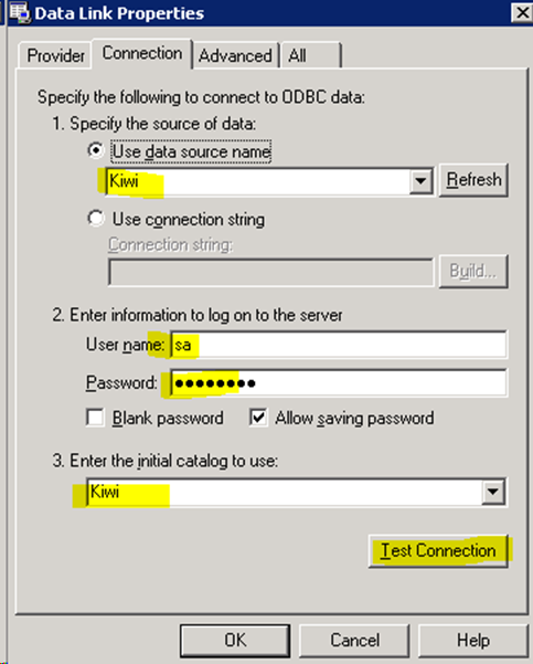 - Call the SQL DSN Under Kiwi Syslog Server Setup and verify the ODBC Connection