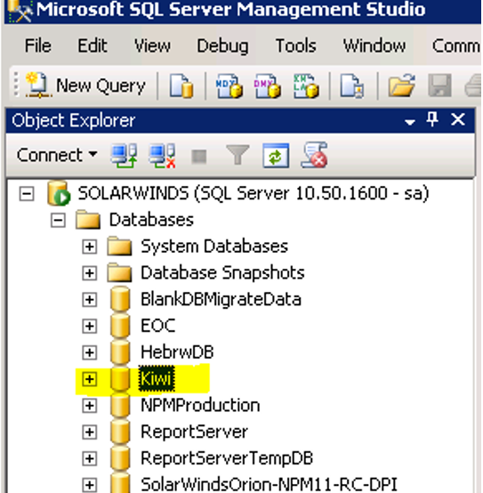 On your SQL server create new database called Kiwi SQL Management Studio Direct Download Link